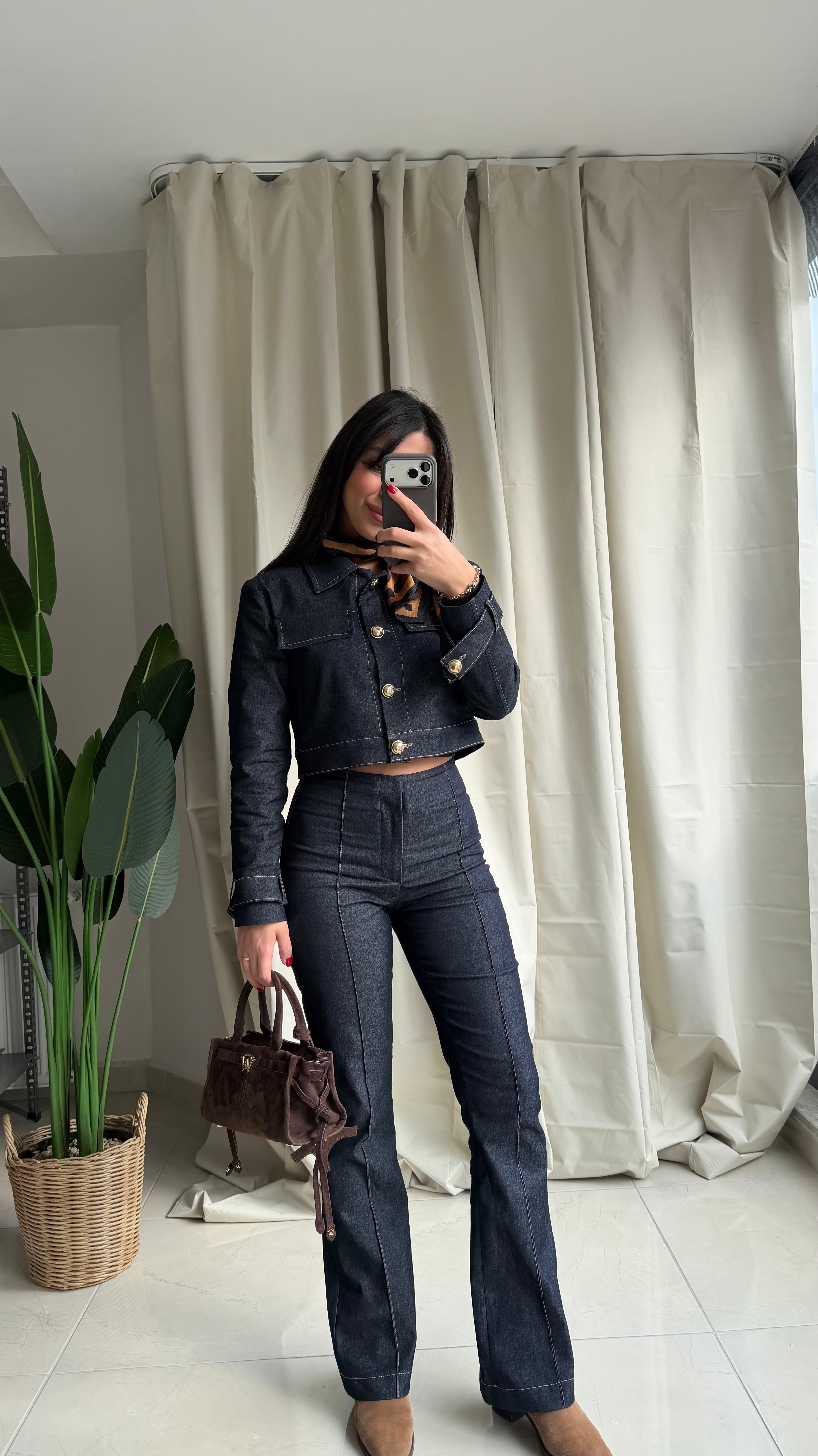Kahverengi Denim Takım