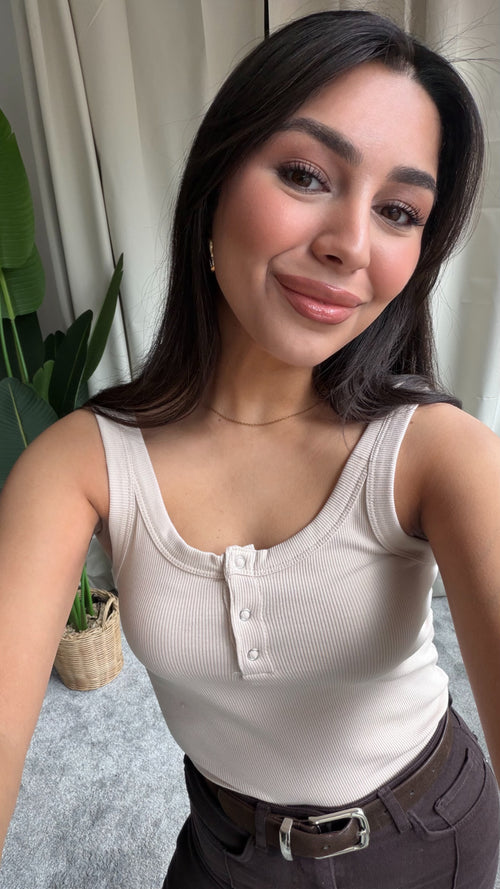 Bej Düğmeli Atlet